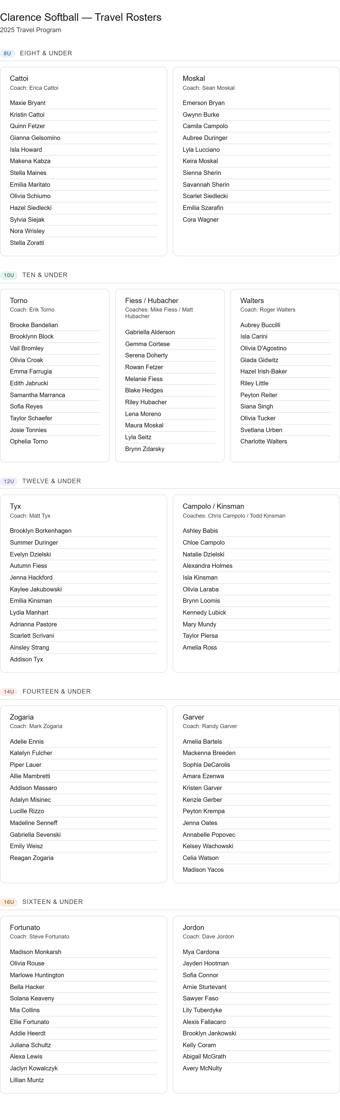 2026 Travel Team Rosters